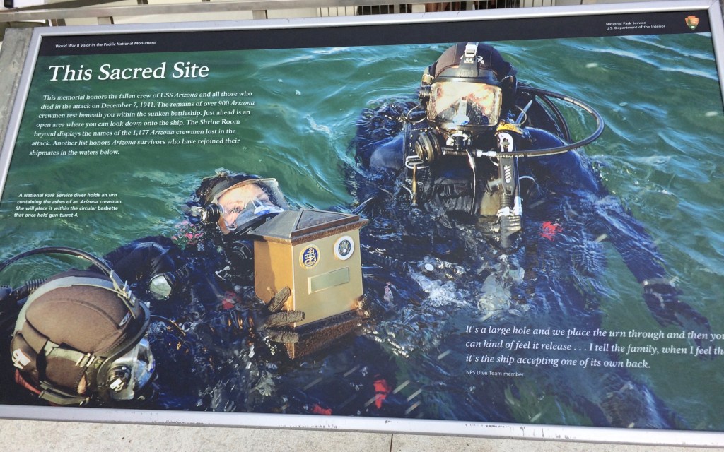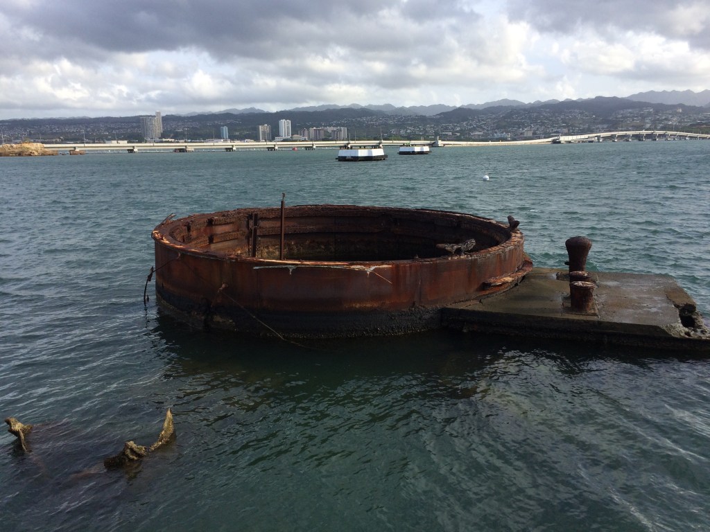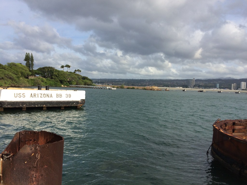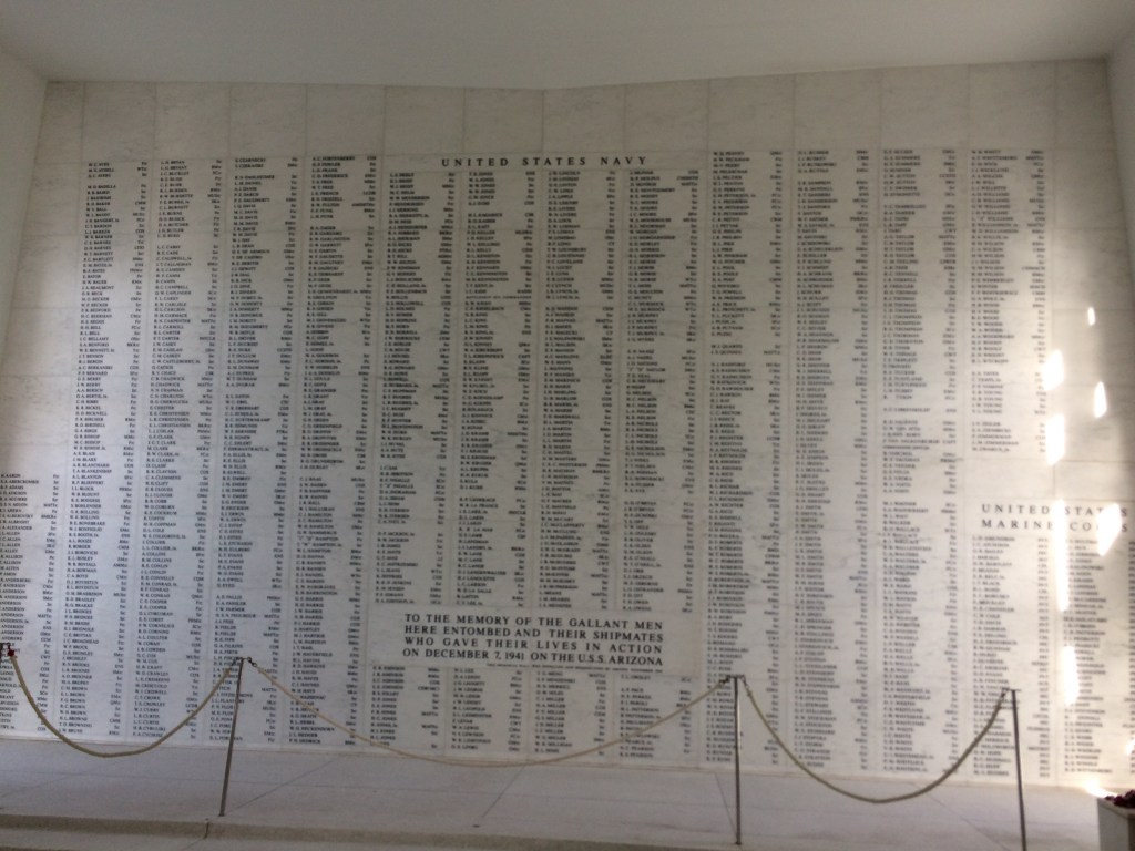 The boat ride on USS Arizona is deeply emotional. The memorial honors the fallen Arizona crewmen in the attack, and survivors who have reunited with their fallen shipmates in the water. Their names are displayed in the shrine room. It makes us to think about how people have sacrificed for our country.