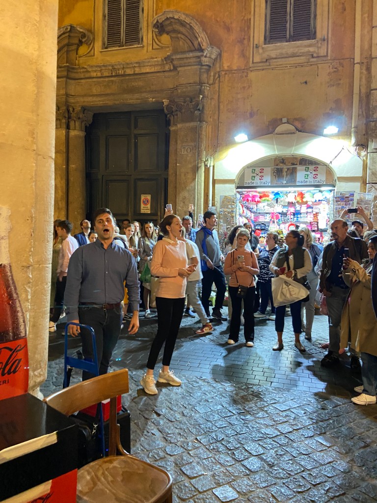 Singing “Libiamo ne’ lieti calici” (Let’s drink from the joyful cups) in the street of Rome